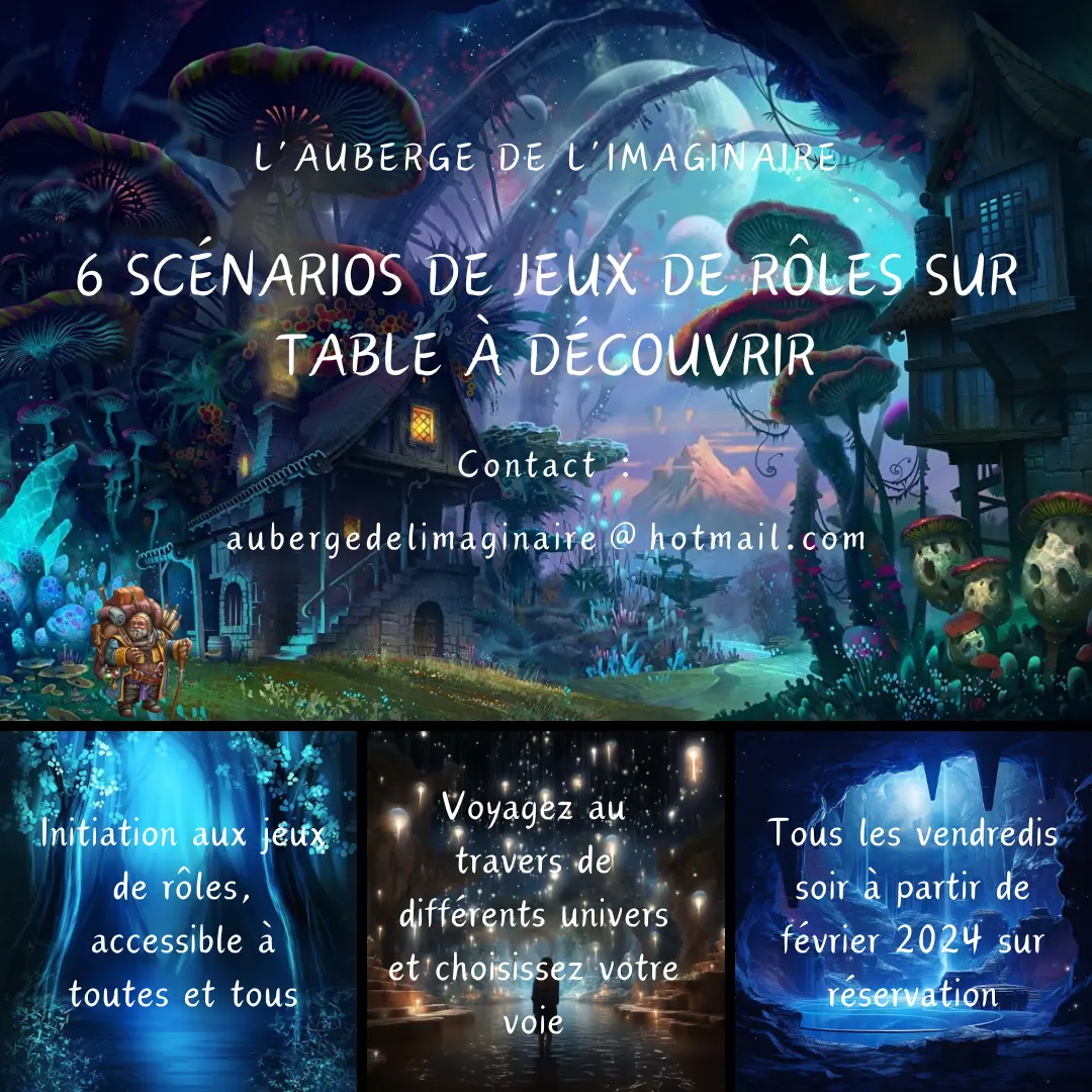 À l'Auberge nous abordons tout type d'histoire et d'époque (moyen-âge, viking, fantastique, surnaturel, horreur…), nous aimons proposer des jeux et des expériences qui sorte de l'ordinaire.