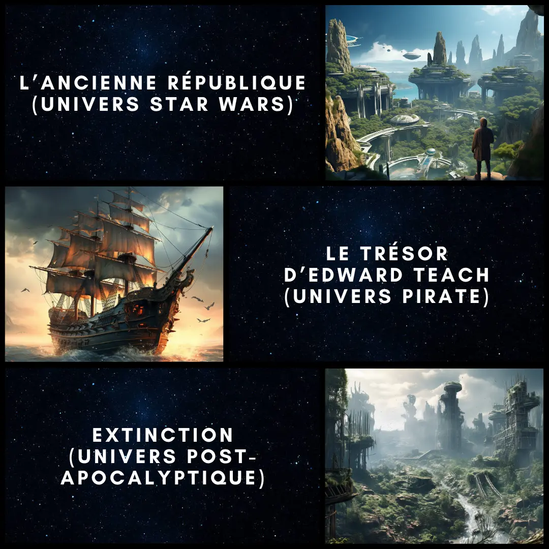 Ainsi, nous façonnons une variété d'expériences ludiques : jeux de rôle sur table, jeux grandeur nature, chasse au trésors, escape game et jeux de société.